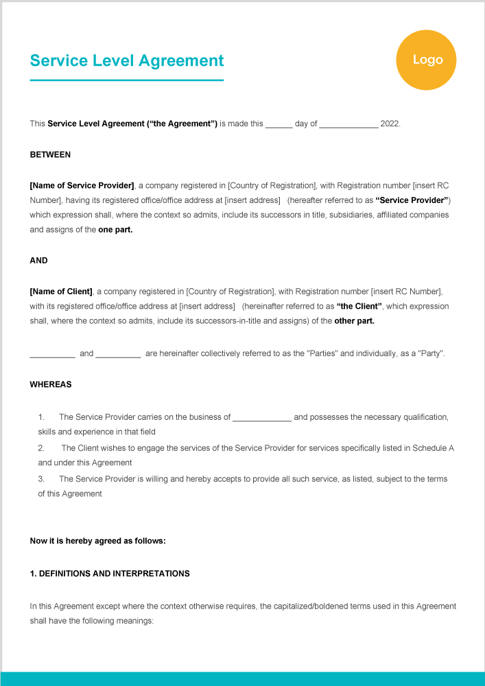 Free Service Level Agreement Template (Doc) Download Bonsai