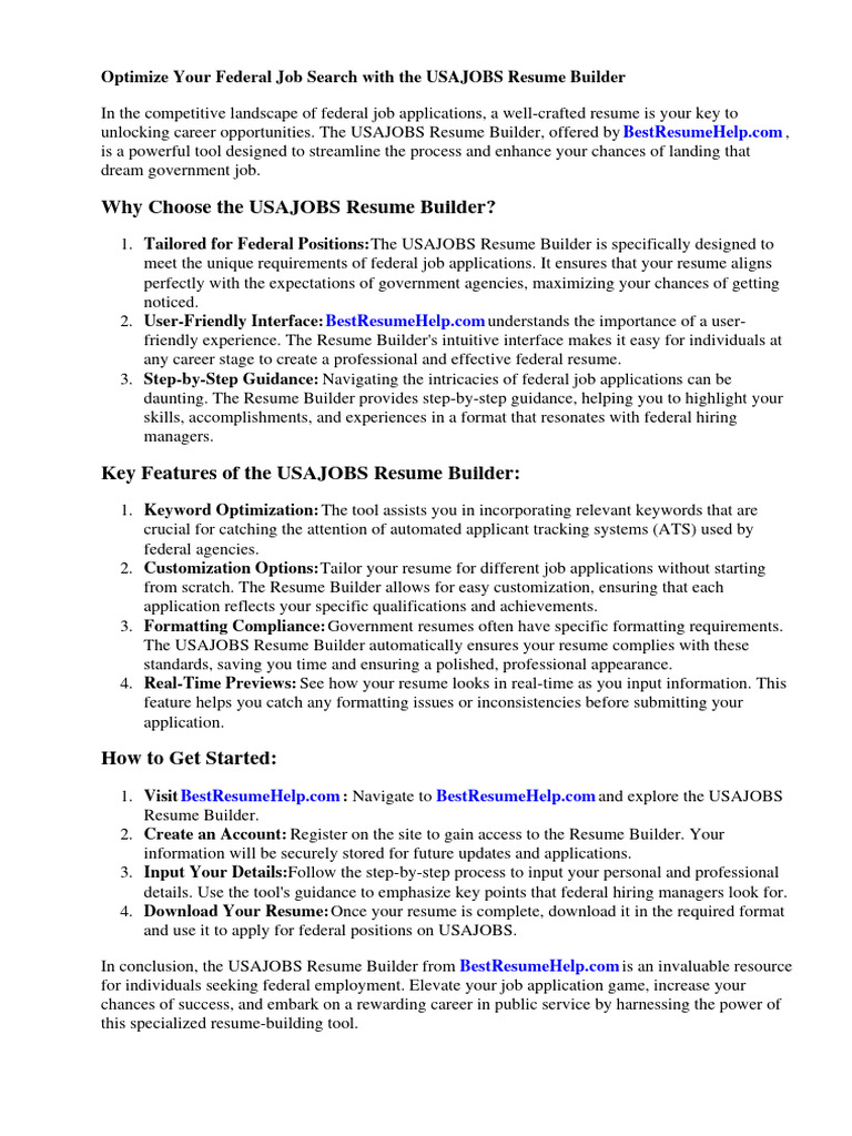 Usajobs Resume Builder Free - Learn how to create, edit, upload, and print a resume on usajobs, the official website of the united states government for federal job. Ai resume builder200+ resume templates